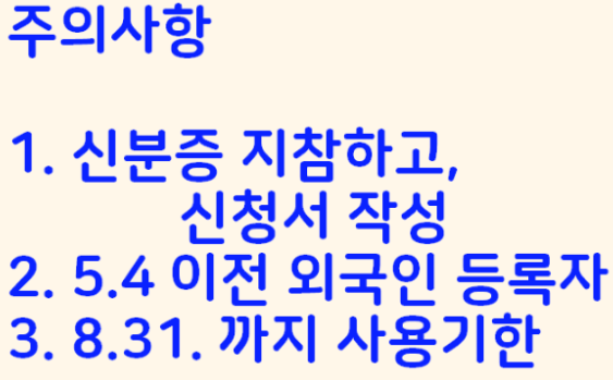 방문시 외국인 등록증를 갖고 신청서를 작성해서 제출해야합니다. 잊지마세요.