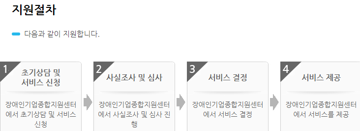 그런후에 장애인 기업종합지원세터에서 서비스를 결정하고, 최종 결정이 되면 장애인 창업 육성 복지 지원을 시작합니다.