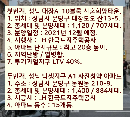 첫번쨰. 성남 대장A-10블록 신혼희망타운 아파트