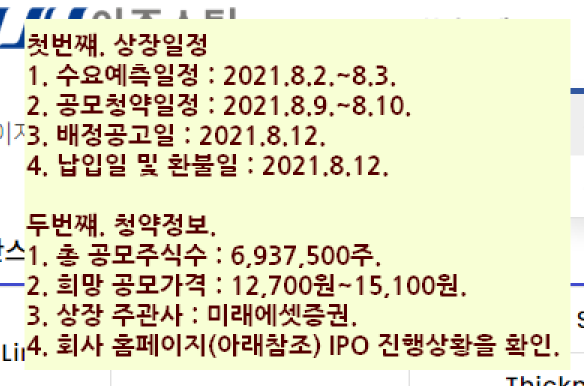 2. 공모청약일정 : 2021.8.9.~8.10.