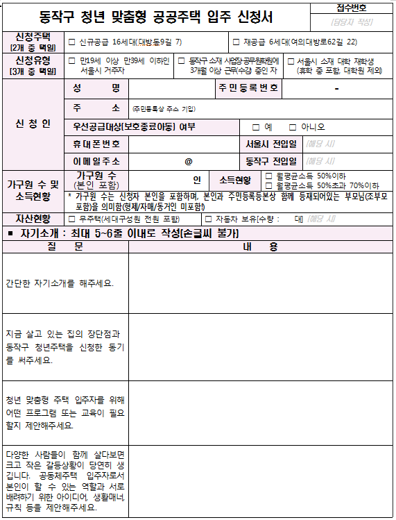 1. 동작구 청년 맞춤형 공공주택 입주신청서.