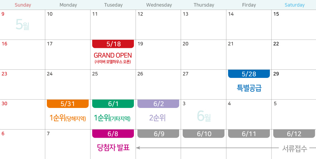 1. 특별공급 : 5월28일 금요일 접수.