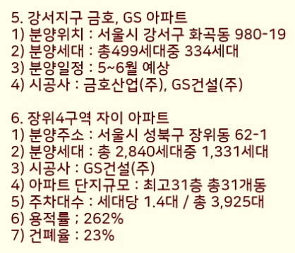 5. 강서지구 금호, GS 아파트