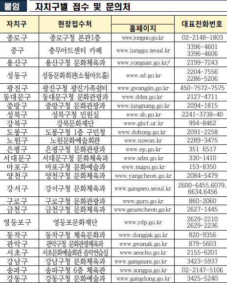 * 자치구별 담당자 전화번호와 현장접수별 표를 아래 첨부하였으니 확인하세요.