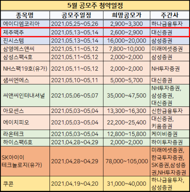 1. 코스닥 상장 맥주회사 / 주관사(대신증권) / 청약일정(2021.5.3.~5.4.)