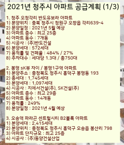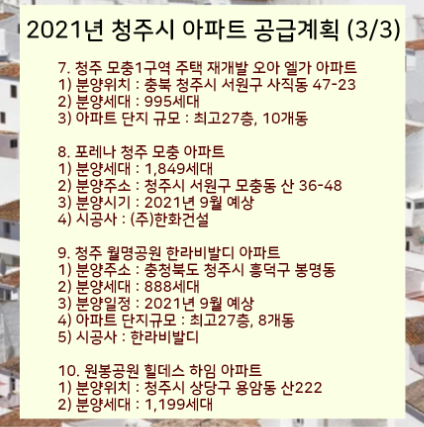 이렇게 2021년 청주 아파트 분양계획를 정리하였습니다.