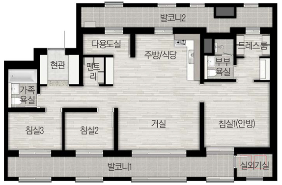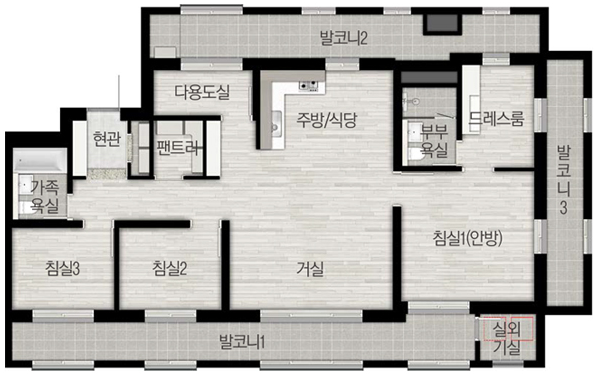 마지막으로 북수원 자이 렉스비아 아파트 평면도중 가장큰 99형입니다.
