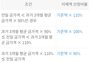 이체액 산정비율은 아래 표를 참고하였으니 살펴보시기 바랍니다.
