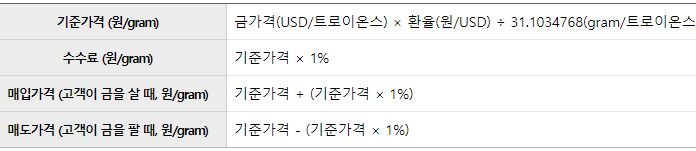 또한 기준가격은 금가격에서 환율을 곱해서 31.1034768gram을 더합니다.