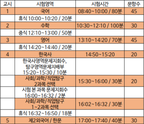* 시험영역 : 국어, 영어, 수학, 사회탐구, 과학탐구