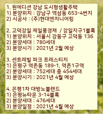 2021년 서울 / 경기도 / 인천 아파트 분양정보 총정리