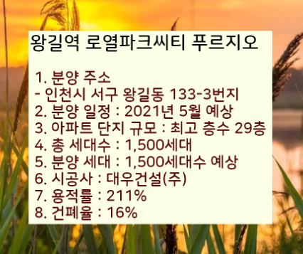 왕길역 로열파크씨티 푸르지오 아파트 분양일정과 청약시 참고할 분양정보들을 알아보곘습니다.