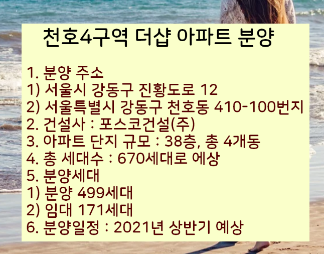 구체적이고 정확한 천호4구역 분양정보는 추후 입주자 모집공고에서 다시 체크하고 청약을 진행하시기 바랍니다.