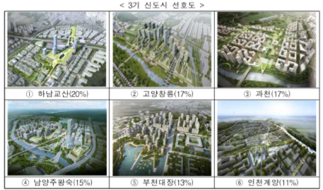 1. 경기도 : 과천신도시, 하남신도시, 남양주신도시, 부천신도시, 고양신도시