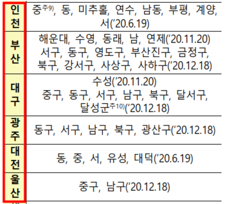- 대구시 조정대상지역 : 동, 중, 서구, 유성구입니다.