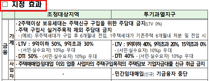 위에는 조정대상지역 지정 현황에 따른 효과에 대해서 분석한 표입니다.