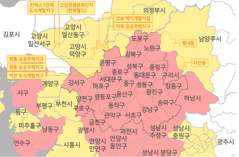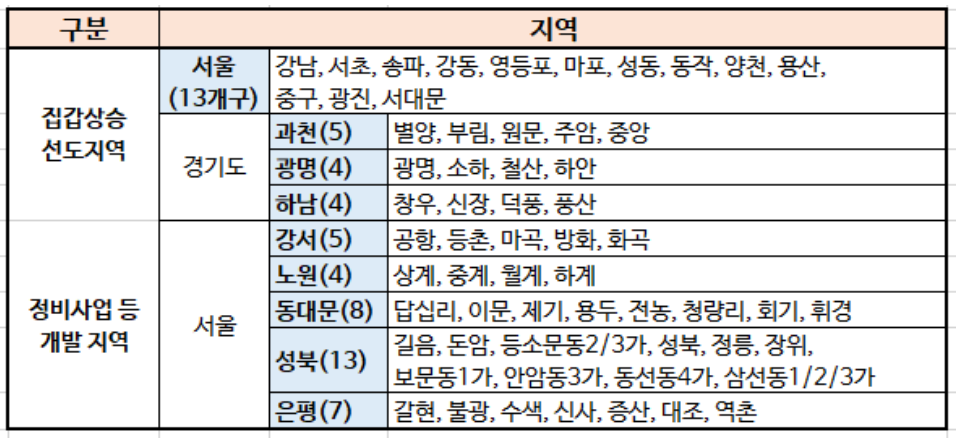 분양가 상한제 적용은 공공택지의 경우, 의무적으로 시행입니다. 그렇다면 민간택지내에 분양가 상한제가 적용되는 지역에 대해서 아래표로 보기좋게 정리해놨으니 참조하시기 바라며, 분양가