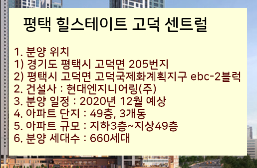 3. 현장 주소 : 경기도 평택시 고덕국제화계획지구 주상복합용지 ebc-2블럭입니다.