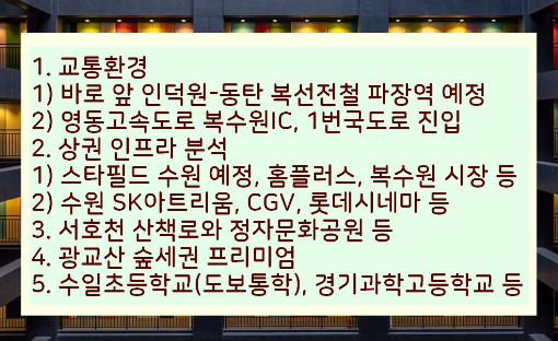 1) 바로 앞 인덕원-동탄 복선전철 파장역 예정