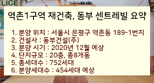 오늘은 역촌1구역 주택재건축 정비사업인 동부 센트레빌 아파트 분양에 대해서 알아보겠습니다.