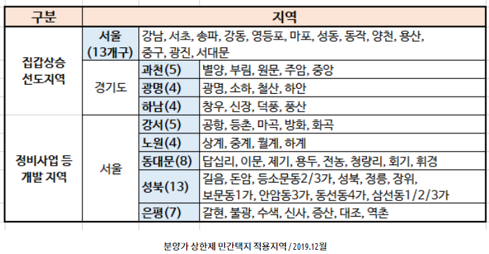 분양가 상한제 적용지역 및 효력