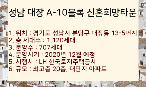 성남 대장 A-10블록 분양 아파트 요약