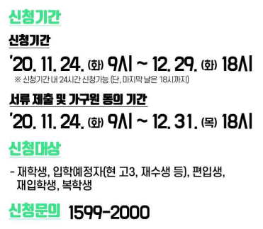 2021년 1학기 1차 국가장학금, 신청기간 및 대상자