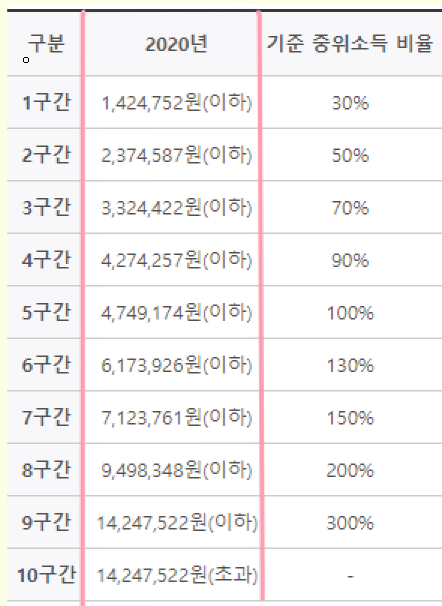 그렇다면 기초생활대상자, 차상위계층, 1구간~10구간까지 소득구간은 어떻게 되는지 알아보곘습니다.