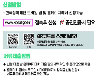 한국장학재단 홈페이지 주소는 위에 알려드렸으니 참고하시기 바랍니다. 공인인증서가 필요하며 QR스캔으로도 가능합니다.