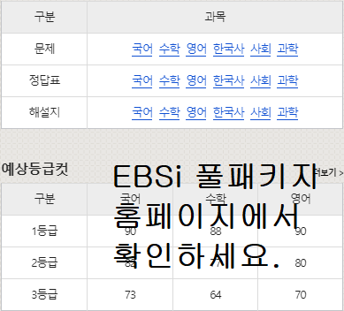 EBSi 홈패이지 / 고2 2020 11월 모의고사 등급컷 및 답지, 문제지, 해설지