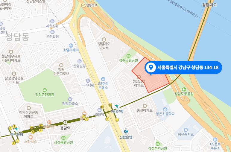 1. 아파트 위치 : 강남구 청담동 134-18 일대
