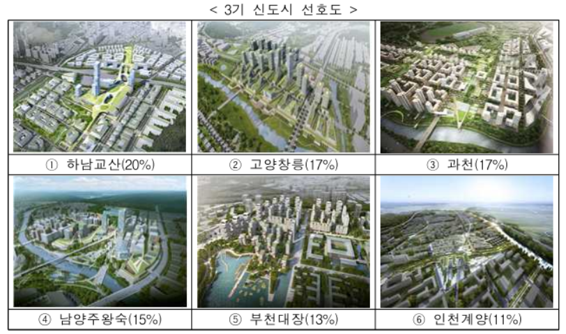 하지만 청약 당첨후에 입주에 필요한 당장의 중도금과 잔금이 없는분들은 3~5년정도 더 뒤에 아파트 내집마련을 한다고 생각하고 3기 신도시 공공분양 및 민간분양 아파트를 고려하는것도 좋은 선택일수있지않나싶습니다. 3기 신도시 주요지역에는 경기도 하남, 고양, 과천, 부천, 남양주신도시가 있으며 인천 계양도 신도시에 포함되어 있습니다. 3기 신도시 지역별 선호도를 참조하시기 바랍니다.