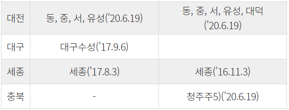 대전, 대구, 세종, 충복 / 투기과열지구, 조정대상지역