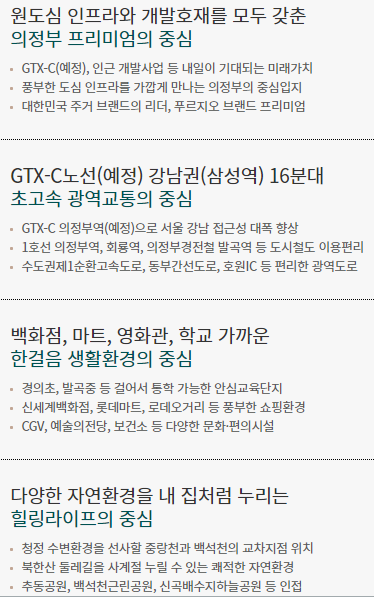 실거주 목적으로 의정부시에 거주하시기에 좋은 환경 인프라를 갖춘 분양 아파트라는 생각이 듭니다.