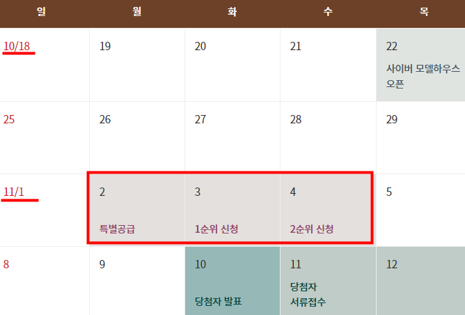 1. 특별공급 기간 : 11.2. 월요일 예정이며