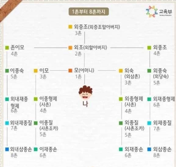 한국의 가족 관계는 혈연적 촌수에 따라 구분되며, 각 촌수에 따른 친척들에게는 고유한 호칭이 부여됩니다.