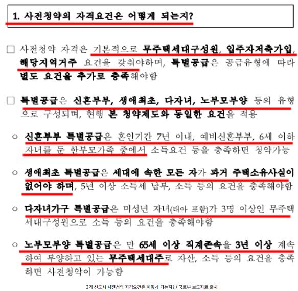 이렇게 3기 신도시 사전청약에 각 특별공급 전형별 지원 자격요건에 대해서 알아봤습니다.
