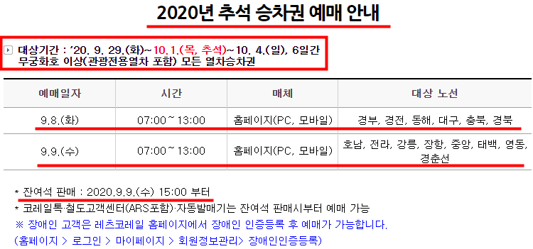2020 코레일 추석 기차표 예매 시간과 일자 등 일정에 대해서 알려드리겠습니다.