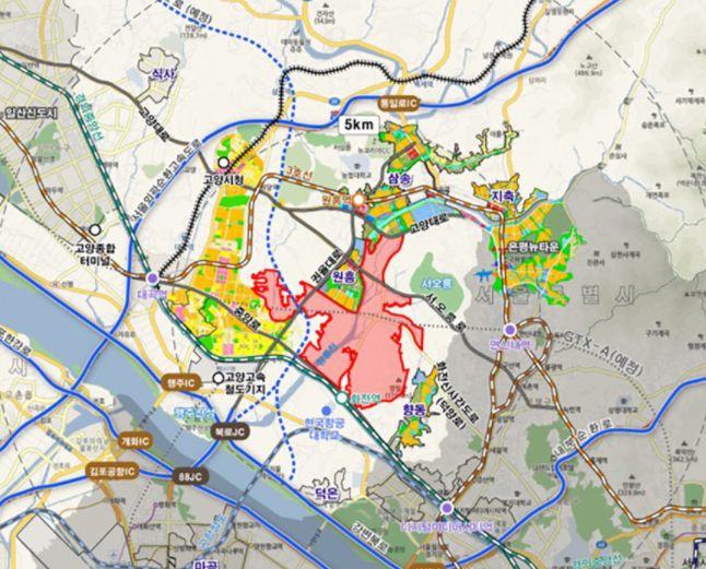 3기 신도시중에 고양시 용두동과 도내동, 화전동 일원을 말하며 면적은 246만평으로 분양 호수는 38,000호입니다. 경기도와 한국토지주택공사에서 시행자라고 합니다.