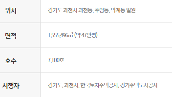 경기도 과천시의 3기 신도시로 과천동, 주암동, 막계동 일원으로 위치해있고 47만평을 분양할 계획ㅇ비니다. 분양 호수는 7,100호로 경기도와 과천시, 한국토지주택공사, 경기주택도시공사가 시행자입니다.