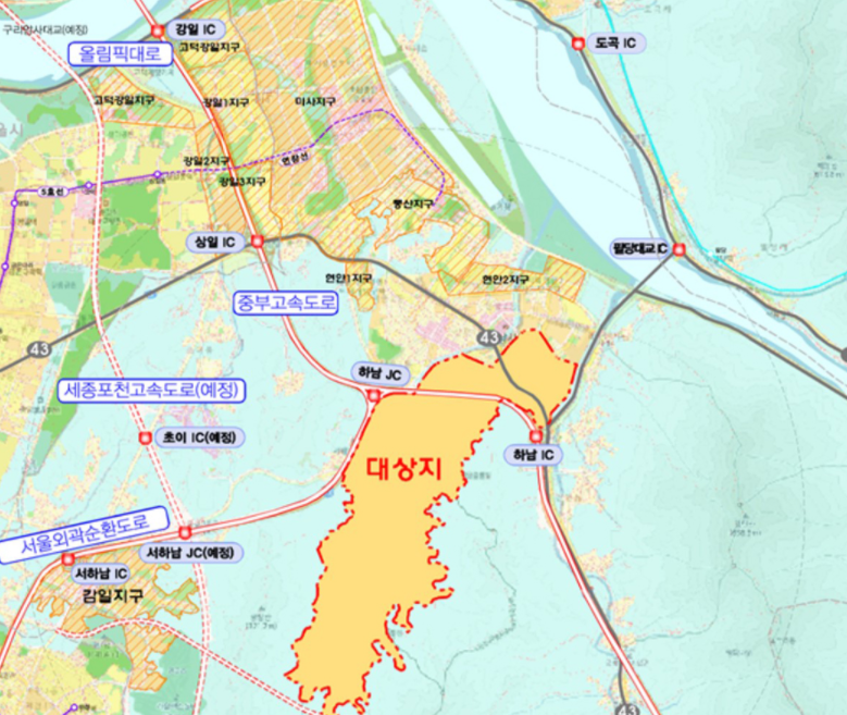 2) 하남 교산 위치와 면적, 호수