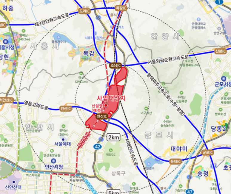 7) 마지막으로 안산시 장상의 3기 신도시 위치를 알려드리겠습니다.