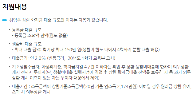 대학생이 학업에 전념하도록 취업후에 상환할수있도록 하는 지원 제도입니다.