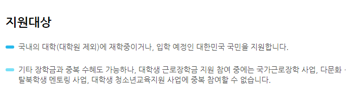 가장 중요한점은 기타 장학금과 중복수혜가 가능하기 때문에 추천드립니다.