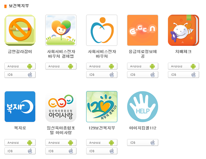 위에처럼 보건복지부 정부 복지제도를 알수있는 어플은 다양하게 있습니다.