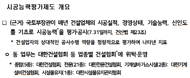 시공실적과 경영상태, 기술능력 등을 평가하여 공시해왔습니다.