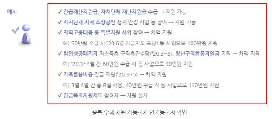 또 많은분들이 긴급 고용안정지원금을 중복 지급이 가능한지 안 가능한지 궁금해하십니다.
