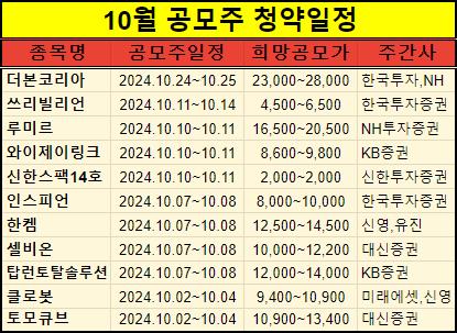 10월 신규 상장예정인 주식들의 공모주 청약일정을 정리해서 알려드렸는데요.
