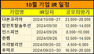 7. 공모주 청약일정 : 2024년 10월 7일~10월 8일.