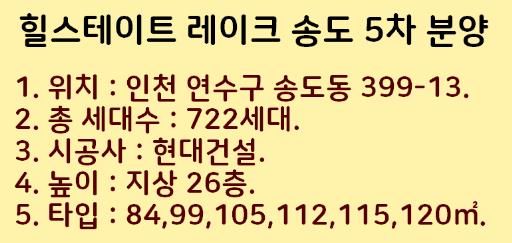 이렇게 힐스테이트 레이크 송도 5차 아파트 분양정보를 정리했는데요.